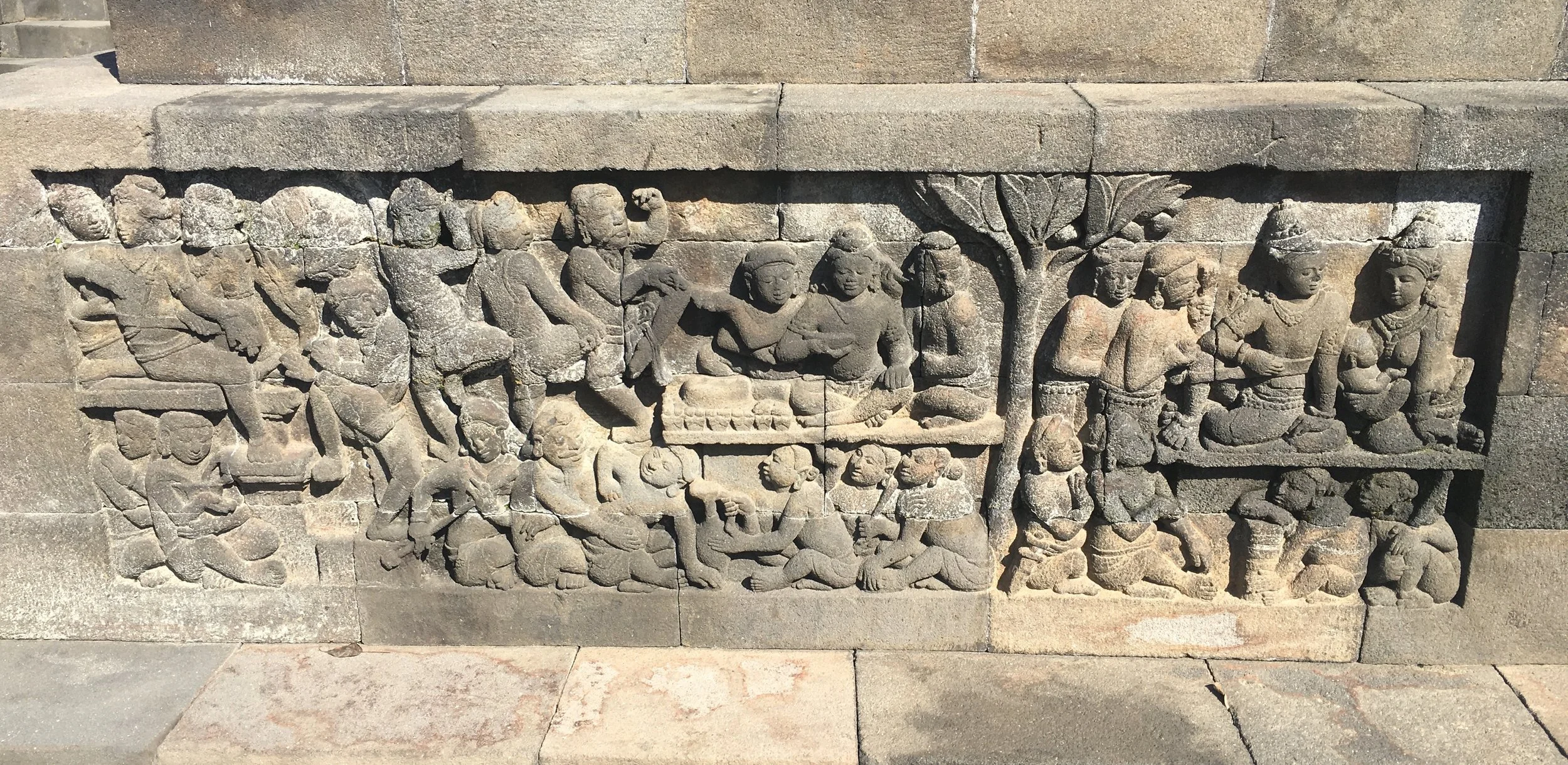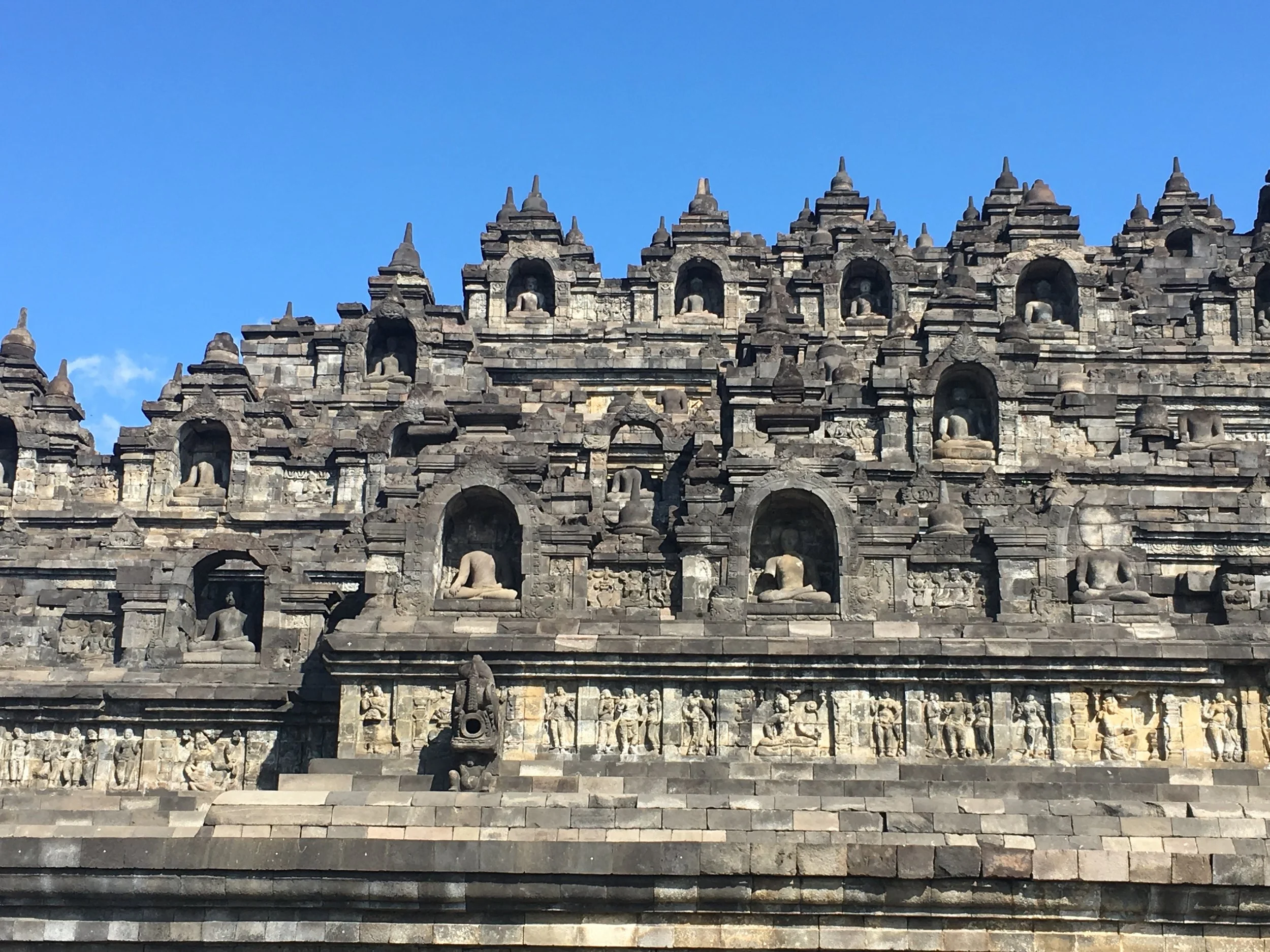 Our guide explained that as you climbed Borobudhur, you moved towards enlightenment. On the lowest level, were the stone reliefs depicting the sinful activities you had to abandon. Drinking, partying and really anything good was left at level 1.